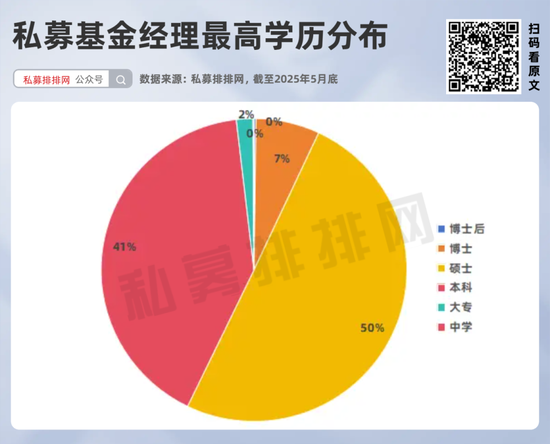 根据私募排排网数据万宝优配,截至2025年5月底,有学历信息显示的私募基金经理共有13032位。其中,最高学历为硕士的基金经理最多,有6541位,占比约为50.19%;本科学历者紧随其后,有5343位,占比约为41%;其次,博士、博士后学历者共有907人,占比约为6.96%。