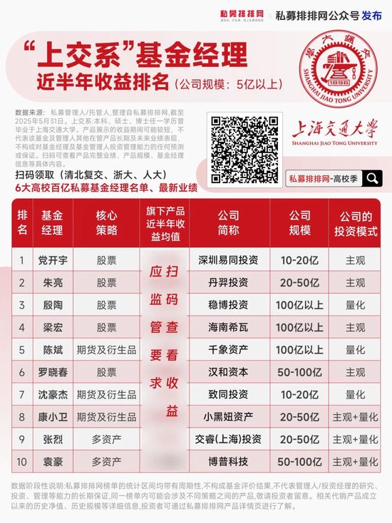 上海交大:海南希瓦的梁宏、千象资产的陈斌居前5!