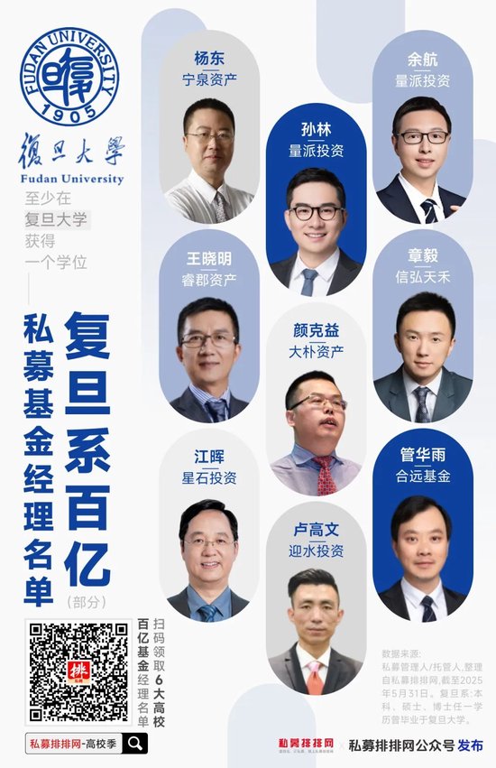复旦大学:信弘天禾的章毅居第3,量派投资的孙林居第8!